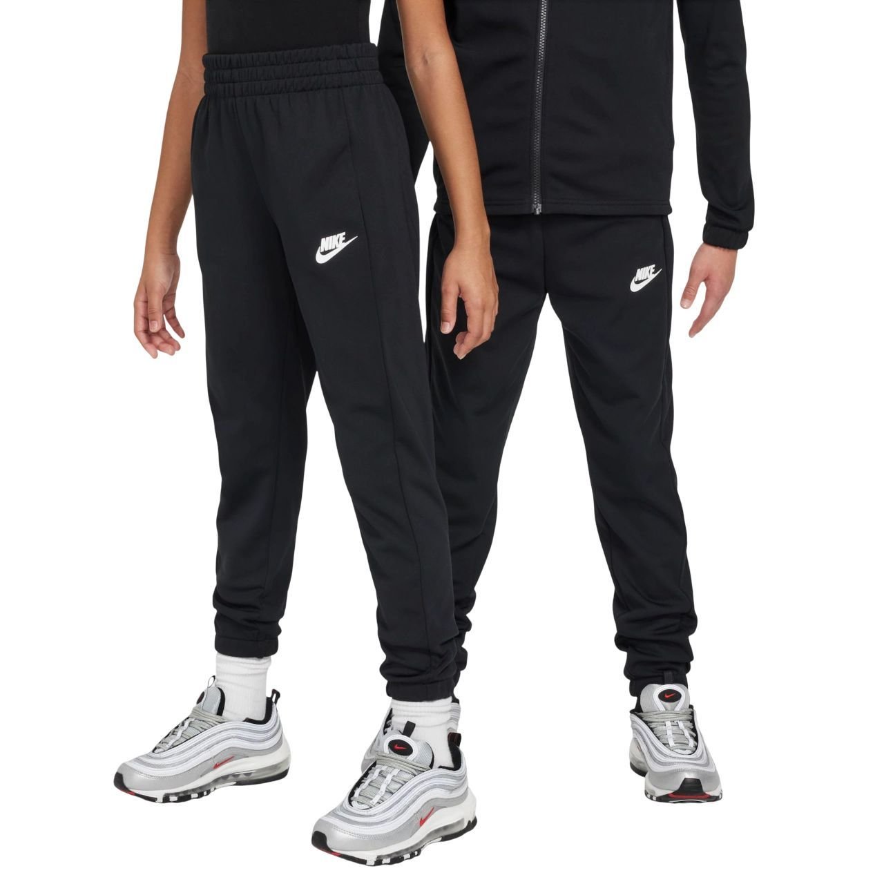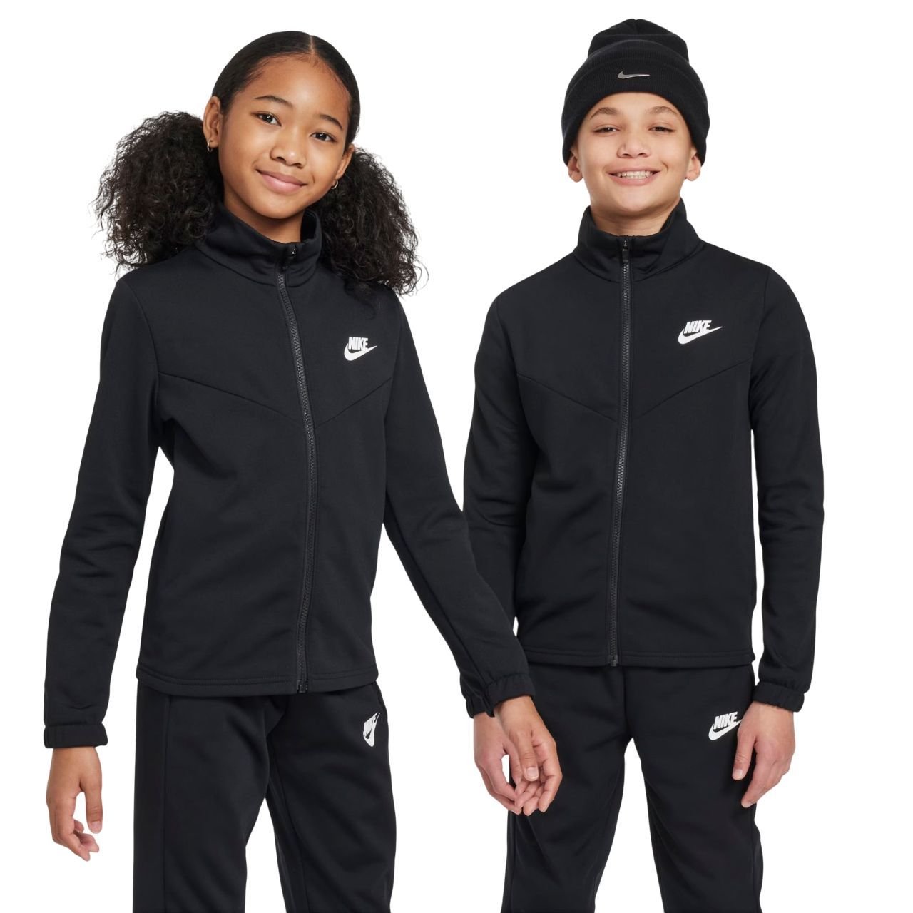 Os punhos elásticos na jaqueta e na calça garantem um toque aconchegante e seguro, enquanto o icônico logotipo Futura estampado nas costas da jaqueta expressa sua paixão pela Nike.