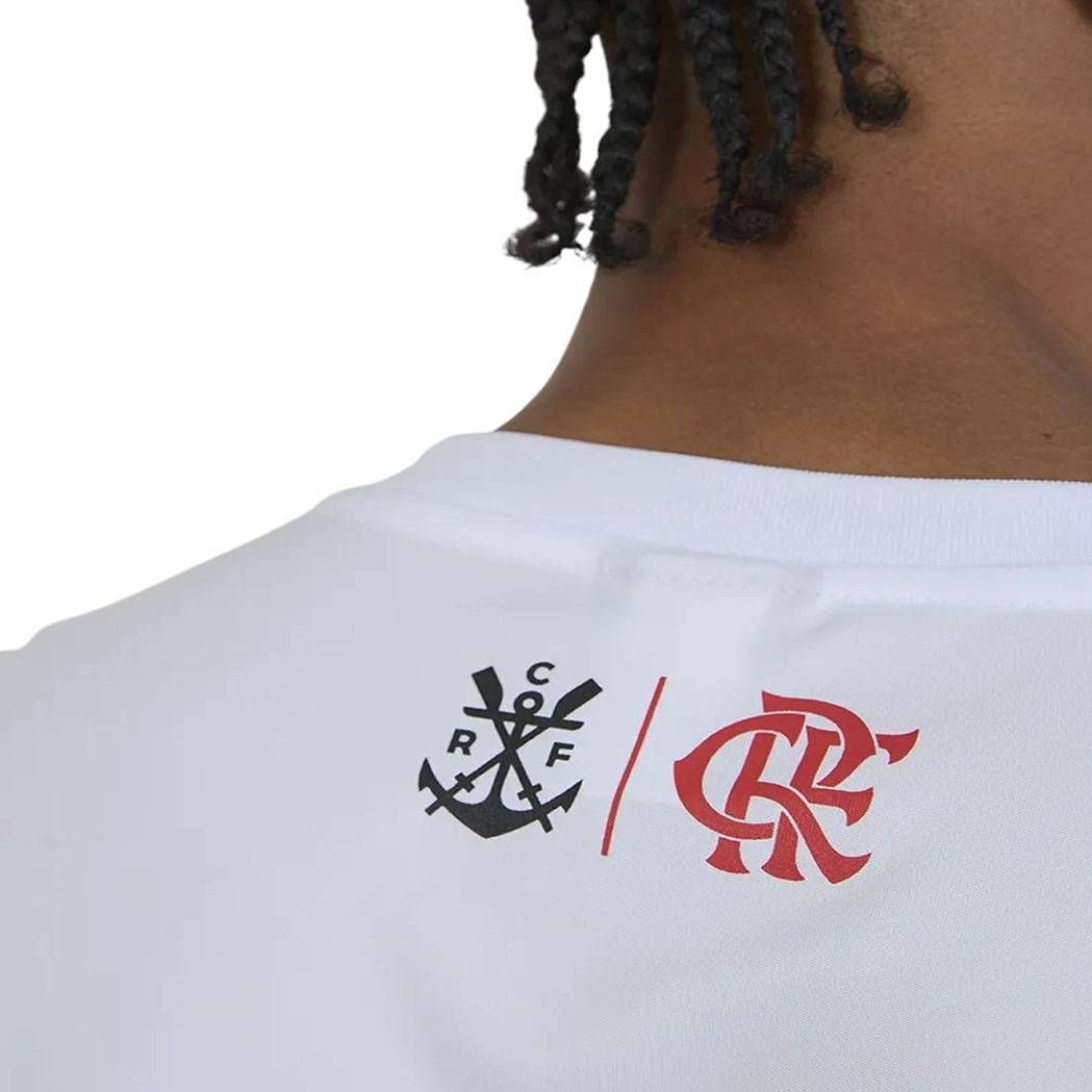 Design "Fulgor" Moderno: Com uma estética que evoca a intensidade e a energia vitoriosa do Flamengo, esta camiseta apresenta o escudo em destaque e detalhes que reforçam a identidade soberana do CRF.