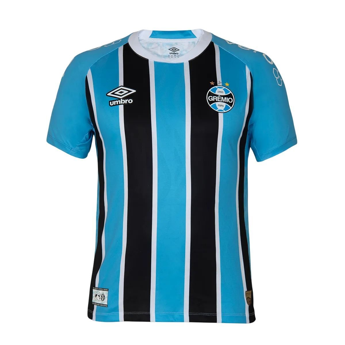 Com um design único e autêntico, a camiseta apresenta detalhes que celebram a grandeza do Grêmio: na parte de trás, a etiqueta com a palavra "Imortal" acima da bandeira do Rio Grande do Sul, e nas laterais, a sublimação de círculos que representam os continentes do mundo, unindo a torcida tricolor em todos os cantos. O patch especial na barra inferior, com a frase "Nos quatro cantos do mundo, com o Grêmio onde o Grêmio estiver", reforça o amor incondicional pelo clube.