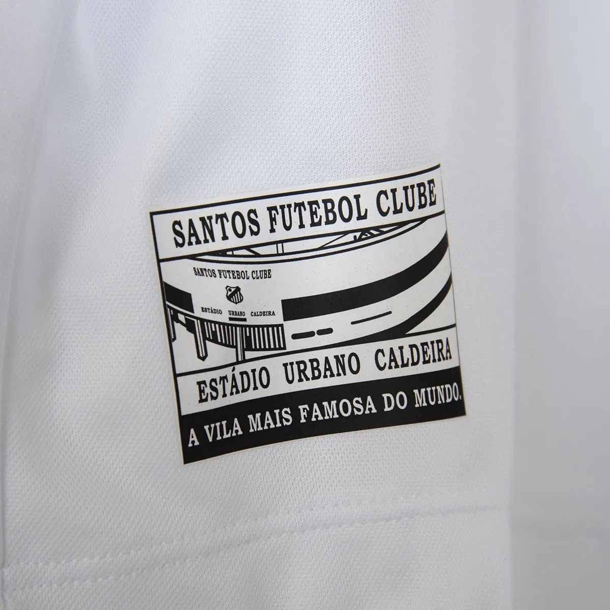 O design inclui um logo bordado e grafismos em marca d’água na parte da frente, homenageando a histórica Vila Belmiro, enquanto os detalhes exclusivos nas mangas remetem ao Estádio Urbano Caldeira, adicionando elementos únicos que celebram o legado do clube.