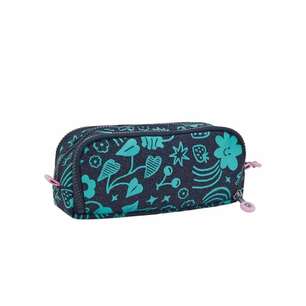 Possui três compartimentos espaçosos, sendo os frontais e traseiros com elásticos para segurar lápis e canetas com segurança. Já o compartimento central é amplo e perfeito para guardar borrachas, apontadores, colas, tesouras e muito mais.