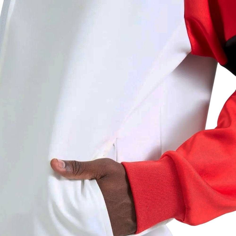 Os bolsos laterais são práticos para guardar pequenos itens essenciais, mantendo tudo à mão. Com o design que remete às glórias do Flamengo, esta jaqueta é mais do que uma peça de vestuário: é um item de inspiração e orgulho.