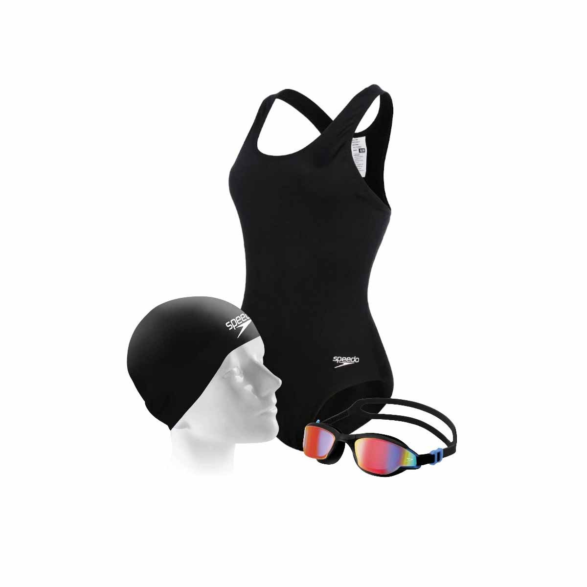 Contém: 1 Maiô, 1 Touca e 1 Óculos