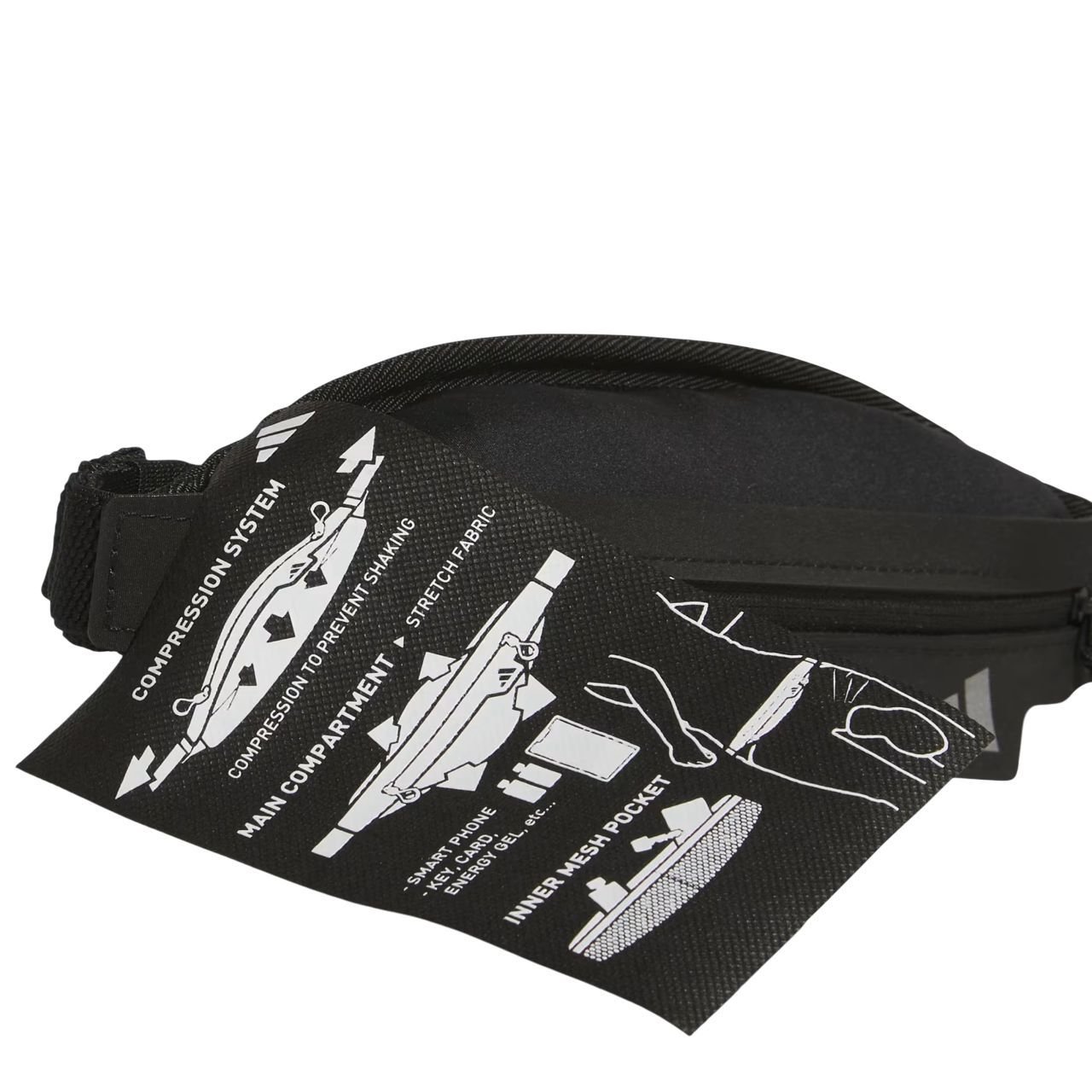 A pochete conta com um bolso com zíper para guardar seu celular ou chaves com segurança, e bolsos internos em malha elástica para organizar pequenos itens. Os detalhes refletivos aumentam sua visibilidade em condições de pouca luz, garantindo mais segurança em corridas noturnas.