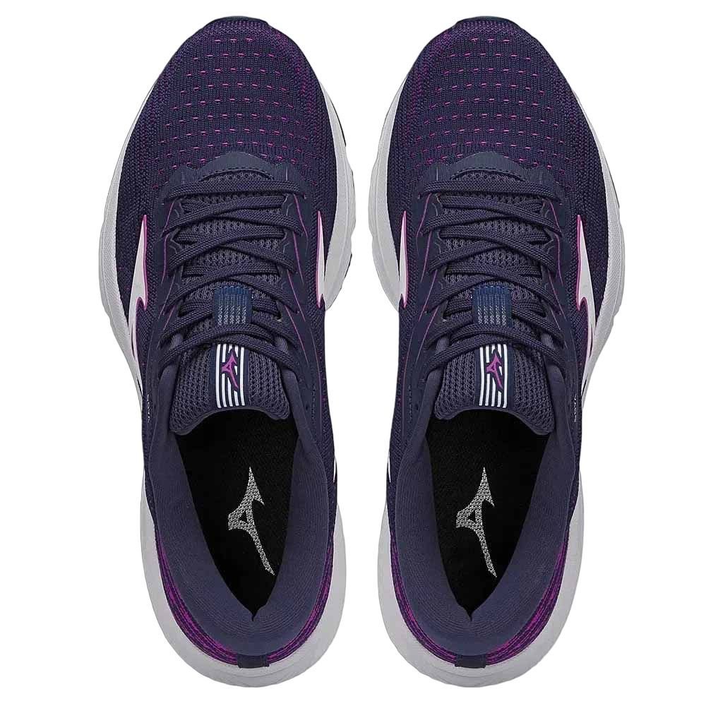 Seu cabedal em material têxtil respirável proporciona uma sensação de frescor e ventilação aos seus pés, permitindo que você se concentre no seu desempenho sem desconfortos. Além disso, o design marcante nas cores marinho e roxo reflete a modernidade e o dinamismo que caracterizam a Mizuno.