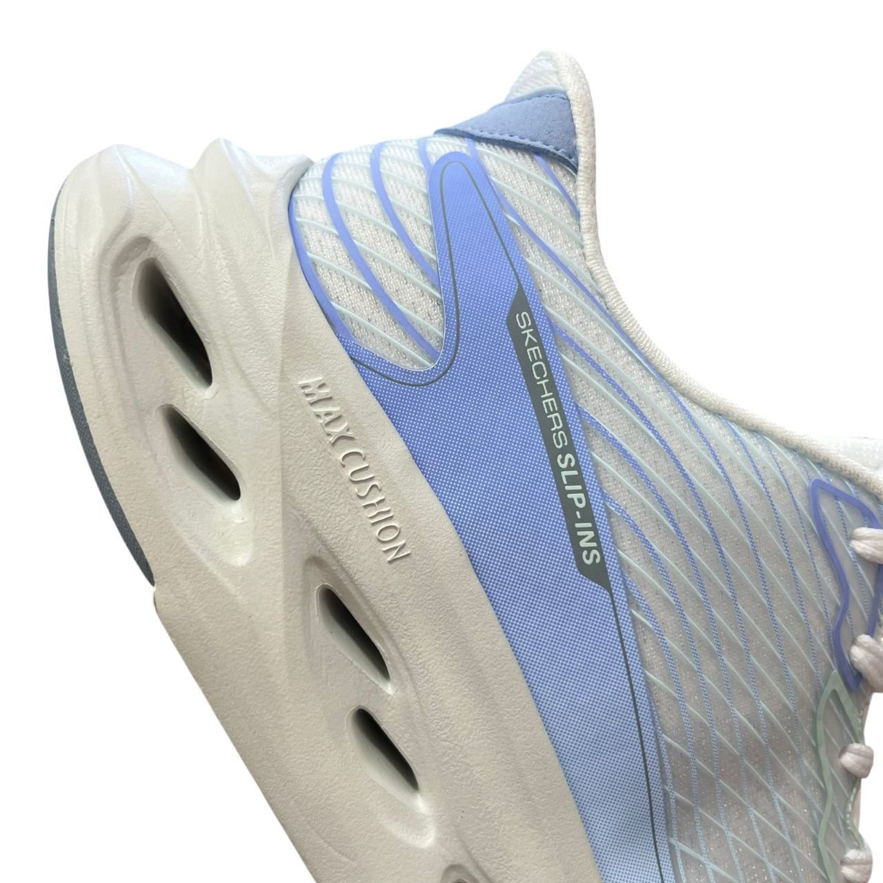 Combo de Amortecimento Max Cushioning + Glide-Step®: Sinta a transição perfeita! A entressola Max Cushioning oferece uma camada generosa de absorção de impacto, enquanto a tecnologia Glide-Step® (com seus recortes geométricos característicos) garante um retorno de energia eficiente e uma passada fluida do calcanhar à ponta do pé.