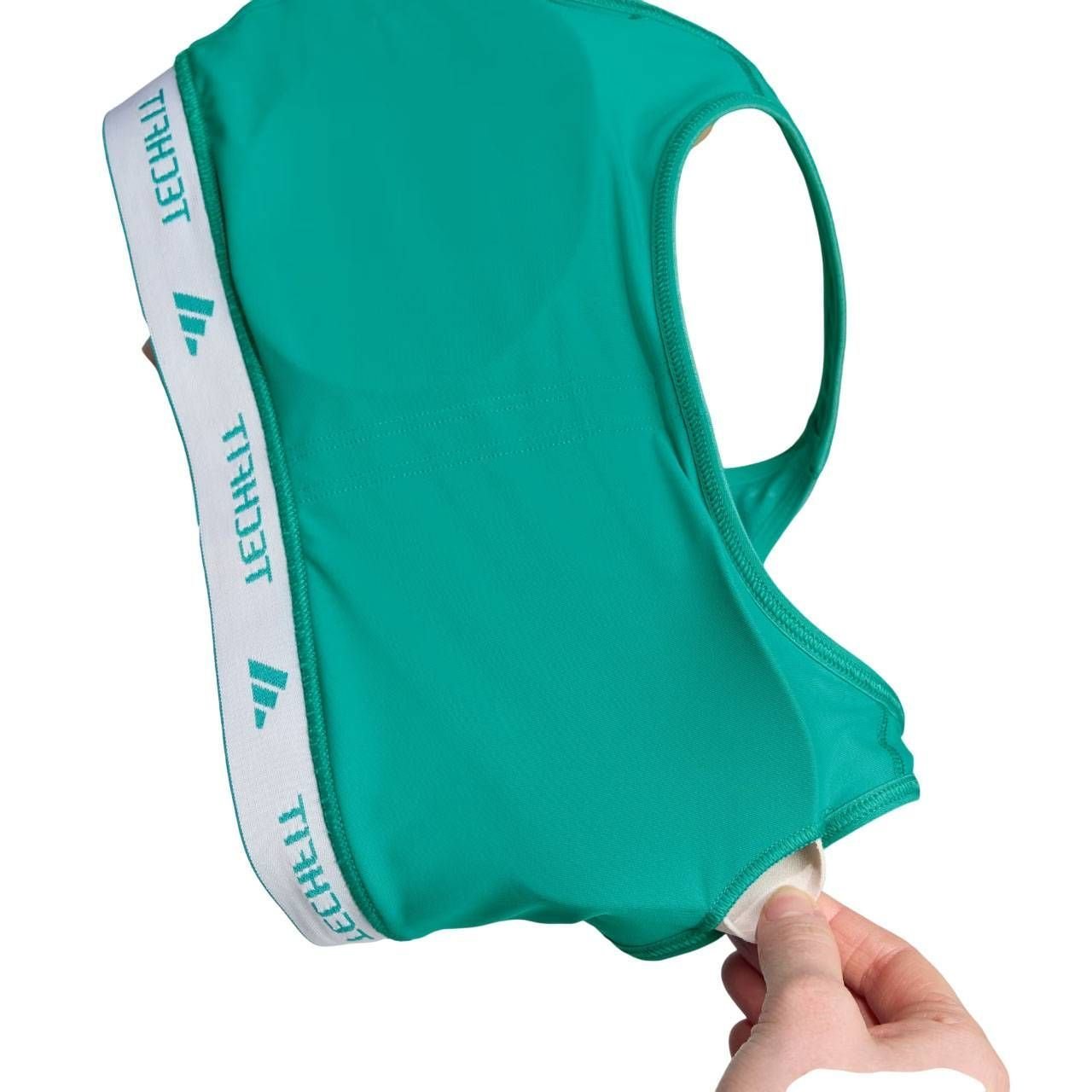Composto por 73% poliéster reciclado e 27% elastano, este top não só oferece flexibilidade e durabilidade, mas também demonstra o compromisso da Adidas com a sustentabilidade. A modelagem justa e as costas nadador proporcionam um caimento perfeito e otimizam a liberdade de movimento. O bolso interno atrás é um detalhe prático para guardar pequenos itens essenciais.