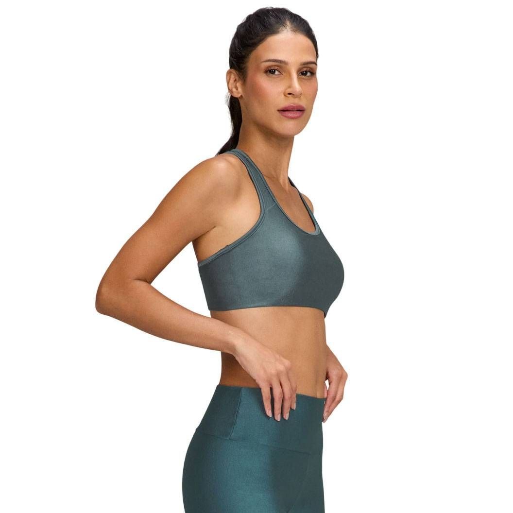 As alças intermediárias e o design das costas nadador garantem um ajuste perfeito e seguro, proporcionando o suporte necessário para treinos de médio a alto impacto, sem restringir seus movimentos. O brilho sutil do tecido adiciona um toque de estilo que vai te fazer brilhar na academia.